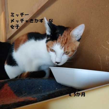 ミミックは三毛女 性格は?少しだけですが慣れたかな?手からチュールはOKです